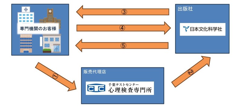 ②千葉テストセンターから日本文化科学社へ、注文依頼を行います。